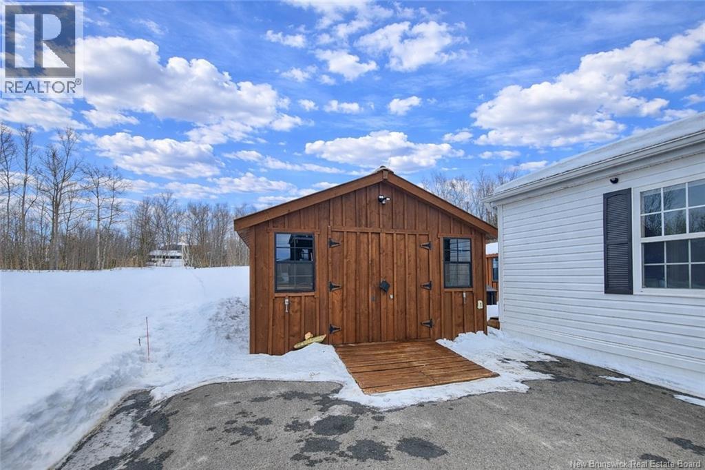 Welcome to this well-maintained 3-bedroom, 2-bathroom mini home located in the desirable Maple Village community in the beautiful town of Grand Falls, just minutes from the golf course, walking & biking trails and close to all amenities. This mini home offers a functional layout with a spacious primary bedroom featuring a walk-in closet and private ensuite, plus two additional bedrooms perfect for family, guests, or a home office. Enjoy the outdoors with a covered screened-in porch and a front deck, ideal for relaxing or entertaining. The property also includes a storage shed and a newly built insulated she-shed with power, perfect for hobbies or extra storage. The mini home also has insulated skirting for improved efficiency, and all appliances are included, as well as the couch, making this a true move-in ready opportunity. Located in a quiet, friendly neighbourhood close to the golf course, shopping, and services, this home is perfect for first-time buyers, downsizers, or anyone looking for low-maintenance living in a great location. The property is on leased land in Maple Village, with lot fees of $240 per month. Dont miss your chance to own this charming mini home in Grand Falls! (id:52657)